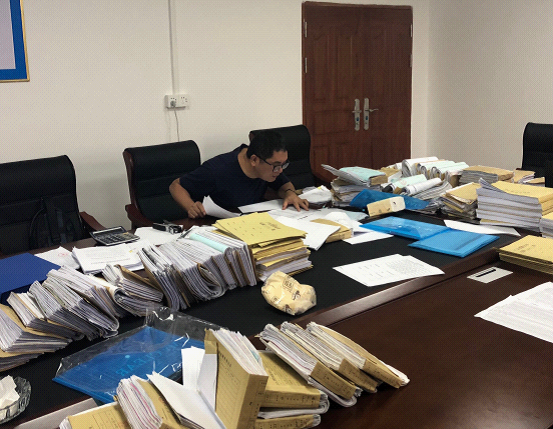 55岁的陈征荻作为组内抽调干部中年龄最大的同志,他没有占着“有资历”摆“老资格”,反而比很多年轻干部还有干劲,粗活累活抢着干,遇到困难冲在前面。在进驻白沙镇一周后,巡察二组很快发现了一条线索,但是却没有确切的证据,工作陷入了僵局。组长赶紧调整工作思路,从账本入手。面对100多本铺满整个会议桌的财务账册,新来的巡察干部们一筹莫展,不知道该从何入手。陈征荻主动挑起看账目工作的大梁,他充分发挥了财务方面的专业知识,从100多本账目中,从中抽出了30多本财务收支账本,一页一页的仔细翻阅,一个数字一个数字的仔细核查。通过调阅、比对、核查了大量数据,查阅到可疑的账目,陈征荻及时向组长汇报,向相关人员了解,并与其他组员讨论研究,终于发现了端倪。
